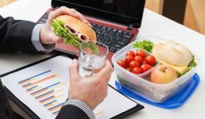 Anche quando scatta la pausa-pranzo e l’ufficio si svuota come d’incanto, lui resta lì, al suo posto, apre una scodella nella quale è contenuta la sua parca colazione, s’affretta a consumarla, e subito dopo va sul balcone a fumare con gusto il suo sigaro, forse l’unico ‘fuori regola’ nel contesto di una vita ‘programmata’ nella normalità.