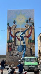 Domani, mercoledì 17 luglio, una squadra di operai inizierà a montare l’impalcatura in piazza Luigi Palomba mentre, in contemporanea, in piazza Santa Croce sarà completato l’altare realizzato dal maestro Filippo Romito, con l’istallazione del dipinto che rappresenta “Pace ed Eucarestia”.