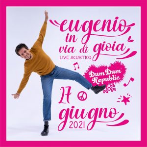 Domenica 27 giugno il pubblico del Dum Dum è pronto a cantare a braccia spalancate e ad accogliere lo “tsunami” degli Eugenio in Via di Gioia. Sarà un live unplugged, quello di Eugenio Cesaro, carico di energia, ironia, leggerezza, ma anche sensibilizzazione ai temi della tutela dell’ecosistema naturale, tra testi arguti e a tratti irriverenti, sonorità folk e swing.