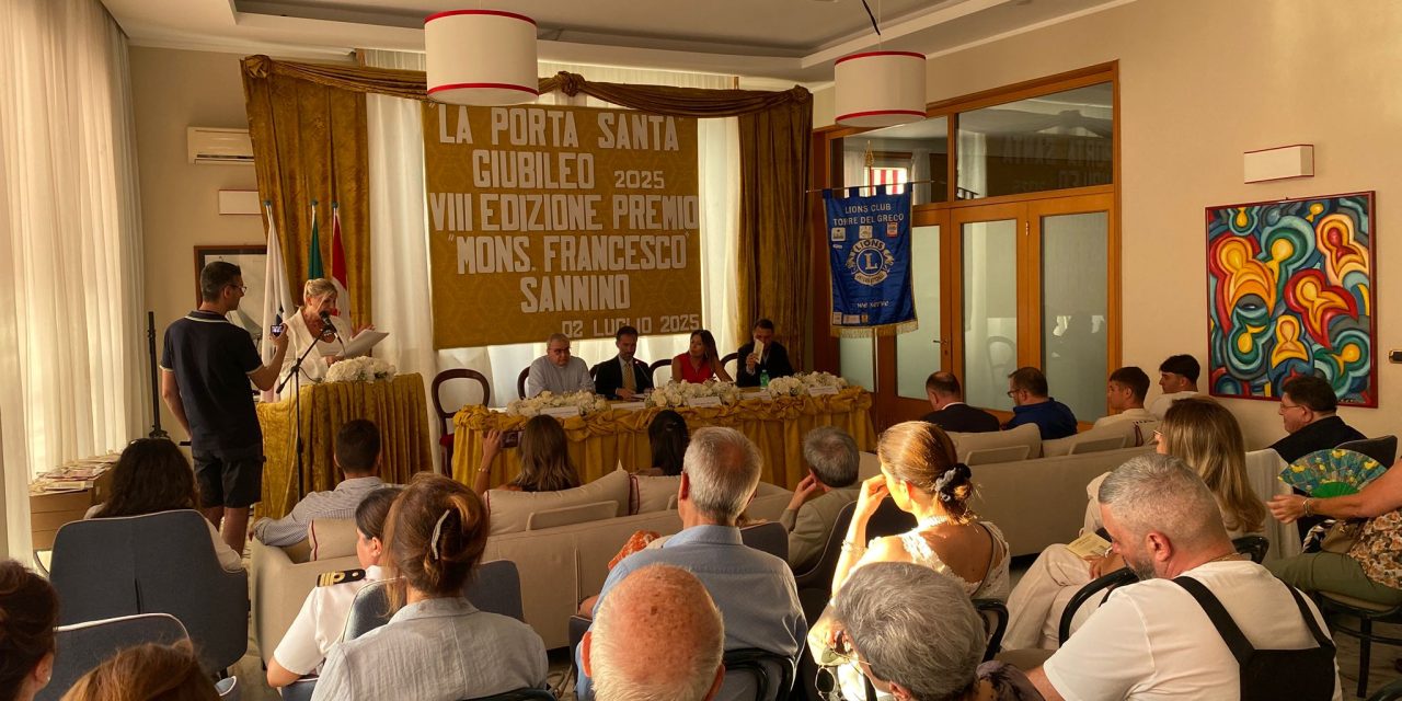 Torre del Greco – Scuola e chiesa per lanciare un messaggio di pace e speranza in occasione del Giubileo. È quanto emerso durante l’ottava edizione del premio “Monsignor Francesco Sannino”, la manifestazione svoltasi ieri, mercoledì 2 luglio, nei saloni del Circolo Nautico, promossa dall’associazione Monsignor Francesco Sannino e dal Club Lions di Torre del Greco, entrambi presieduti da Giovanna Romano.