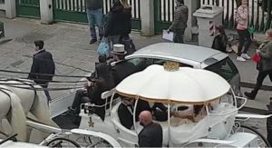 Le violazioni commesse poi per i festeggiamenti delle nozze hanno riguardato anche il passaggio di una carrozza con cavalli e giocolieri a Corso Secondigliano e gli Agenti del Nucleo Mobilità Turistica sono intervenuti fermando la carrozza lungo il percorso per intralcio alla circolazione stradale e sanzionando il conducente per mancanza del contrassegno identificativo e del segnale posteriore di veicolo a trazione animale.