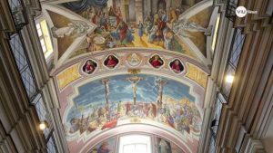Finalmente oggi il ciclo di affreschi si avvia alla sua degna conclusione, grazie alla preziosa opera di un apprezzato pittore di Torre del Greco: Salvatore Seme, talentuoso artista nato e formatosi a Torre presso l’Istituto d’Arte corallino. Seme ha frequentato per un periodo l’Accademia delle Belle Arti di Napoli, per poi dedicarsi interamente alla pittura, in particolare all’astrazione figurativa. Negli ultimi 20 anni si è specializzato in pittura a tema religioso. Tra le tantissime opere citiamo la splendida maiolica sulla facciata esterna dell’Oratorio di San Vincenzo Romano, un suggestivo ritratto di San Carlo Acutis esposto nel Duomo di Napoli, due bellissimi arazzi, raffiguranti San Vincenzo Romano, che impreziosirono il Carro Trionfale dell’Immacolata nel 2019, uno dei Misteri Luminosi che adornano il quadro della Madonna di Pompei, nell’omonimo Santuario, commissionatogli da Papa Giovanni Paolo II.